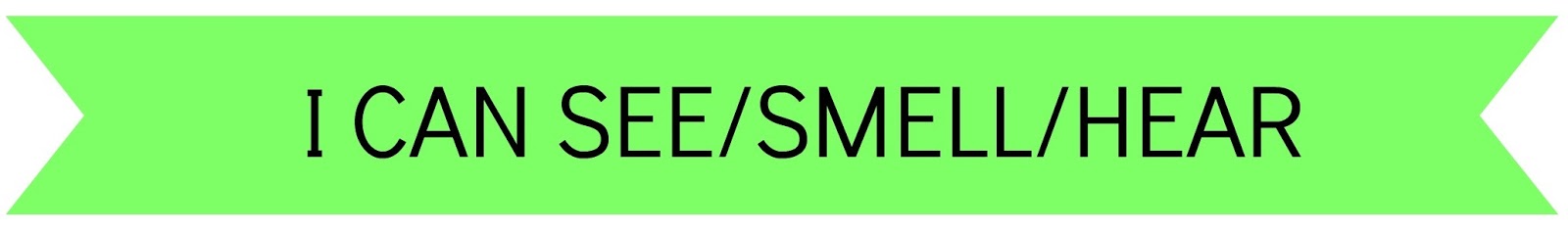 Przygotowałam karty ze zwrotami I can see, I can smell i I can hear, które można wydrukować na kolorowym papierze lub w wersji kolorowej.
