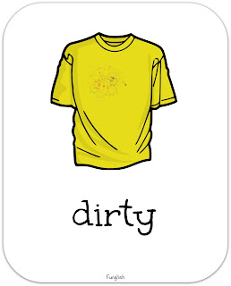 Dzięki grze uczniowie powtarzają nazwy ubrań (np. jacket, sweater, dress, jeans, shorts, socks), a także uczą się dwóch ważnych przymiotników „dirty”, „clean”.