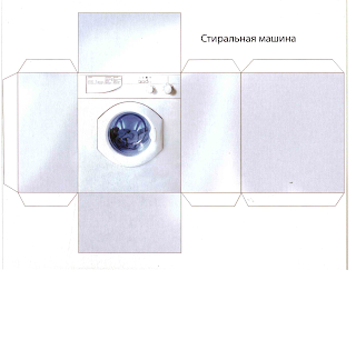 Wracając do pralki, w Internecie znalazłam fajny wzór do samodzielnego zrobienia papierowej pralki. Niestety jest ona dość mała, ale przycięłam nieco obrazek, powiększyłam i wzór gotowy.