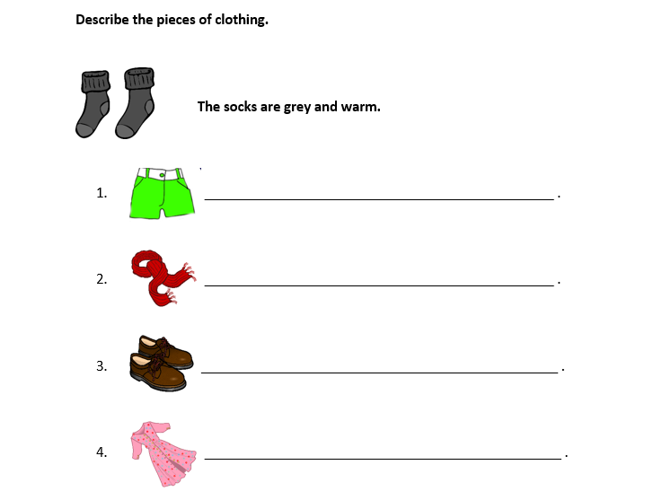- pomysły na picture dictionary z nazwami ubrań oraz przymiotnikami