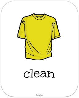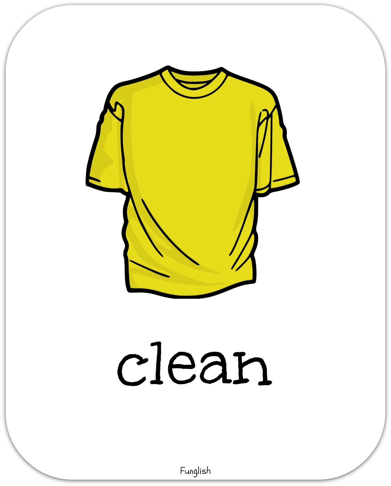 Dzięki grze uczniowie powtarzają nazwy ubrań (np. jacket, sweater, dress, jeans, shorts, socks), a także uczą się dwóch ważnych przymiotników „dirty”, „clean”.
