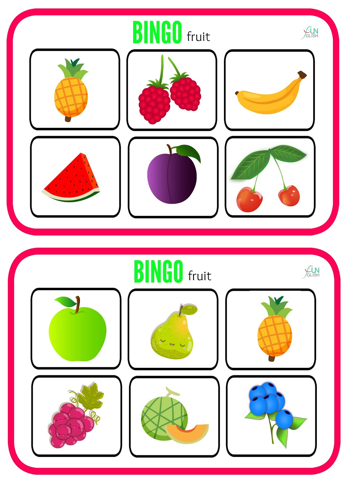 Dzieci, jeden po drugim, odkrywają jedną kartę, nazywają owoc, który widzą na karcie, a kto go ma na swojej planszy mówi „I’ve got…” lub po prostu powtarza nazwę owocu i zakrywa jakimś żetonem (nakrętki od butelki/przedmioty typu: gumka do mazania, temperówka/kredki).