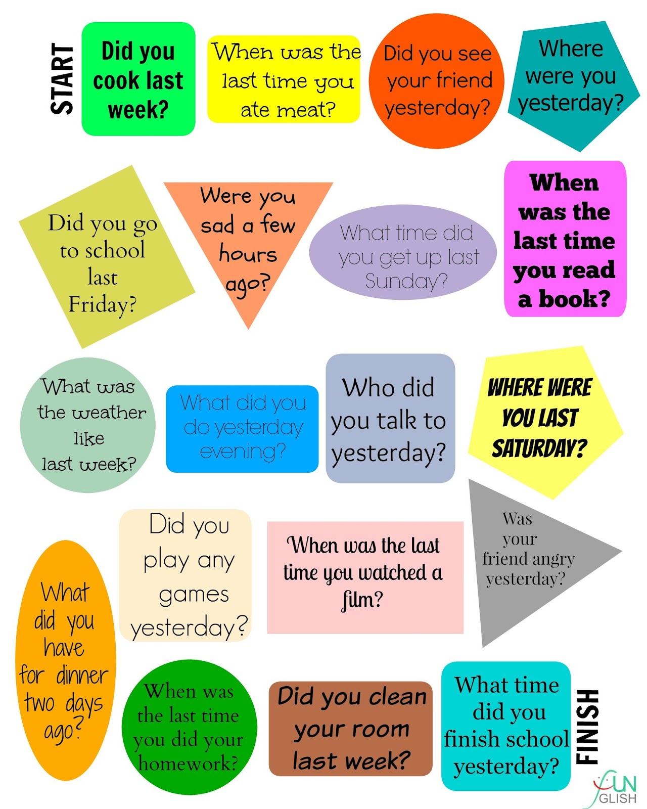 Games/Gry, Grammar/Gramatyka, Past Simple, Present Simple, Speaking/Mówienie, Teenagers, Young Learners/Dzieci Get students to talk! – board gamesFunglish 6 komentarzy 9 stycznia, 2017 Trzy gry planszowe z różnymi pytaniami (od łatwiejszych do trudniejszych). DOWNLOAD