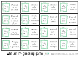 ✬ Who am I? – „Pretend to be…” –? uczeń losuje kartę i musi udawać, że jest kimś/czymś wymienionym w poleceniu. Reszta grupy lub jego drużyna zgaduje.
