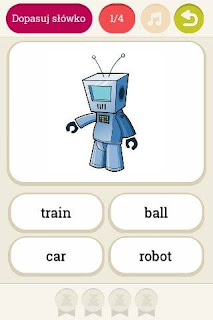 Gra „Dopasuj obrazek”. Słyszymy dane słowo i musimy wybrać odpowiedni obrazek.