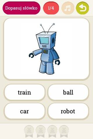Gra „Dopasuj obrazek”. Słyszymy dane słowo i musimy wybrać odpowiedni obrazek.