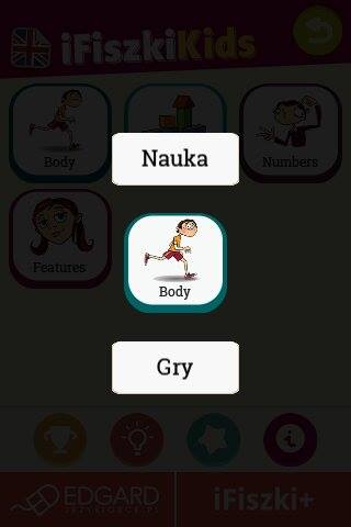 Po wybraniu kategorii pojawia się okienko, w którym musimy wybrać tryb nauki lub gry.