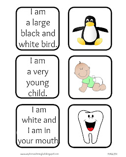 Dla nie czytających pierwszej części wpisu znajdziecie go TU, stamtąd pobierzecie karty z zagadkami, które wrzucałam poprzednio oraz poczytacie o pomysłach z nimi związanymi.