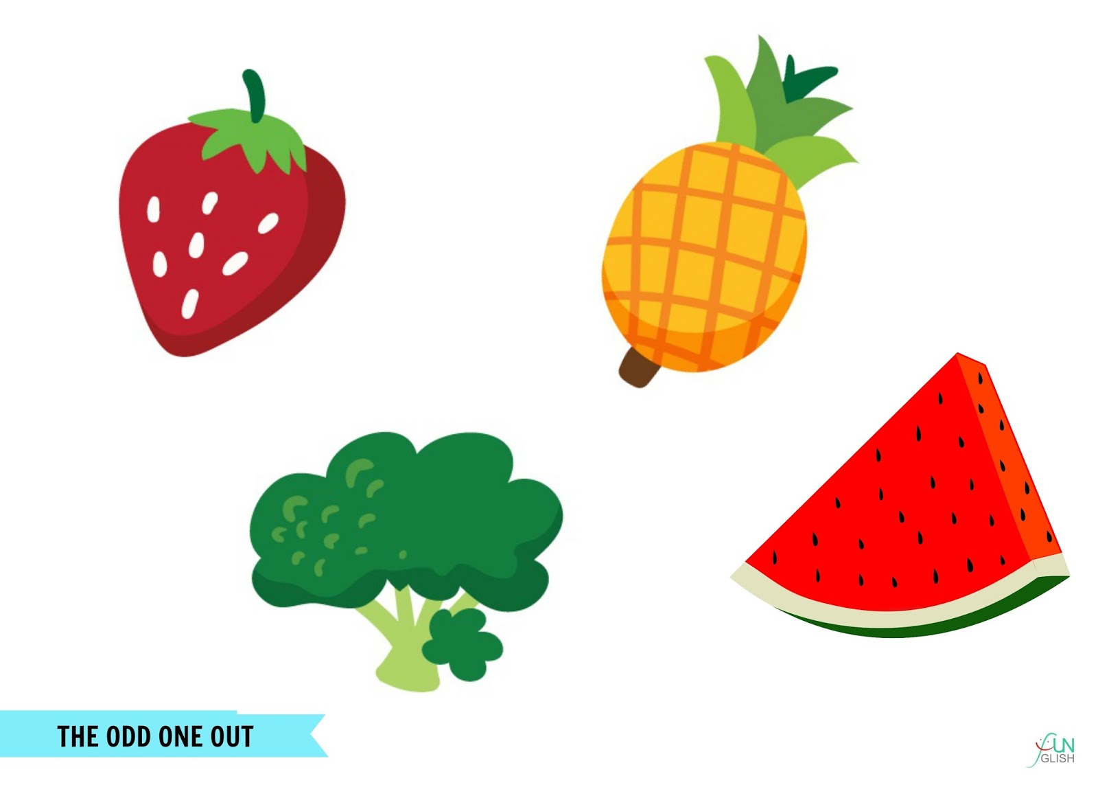 wyświetliłam dzisiaj trzecioklasistom. W planszy nr 1 nie pasuje banan – bo nie ma zielonego listka 🙂